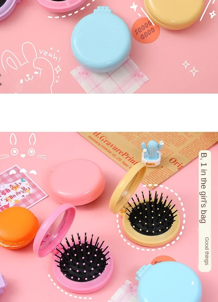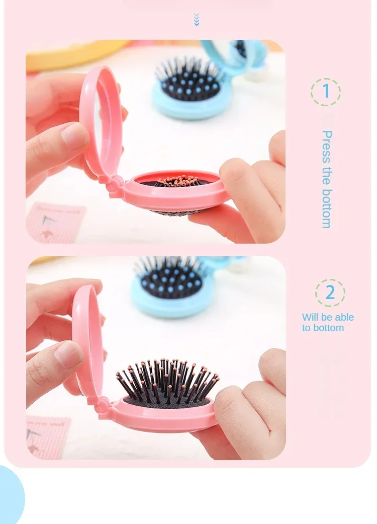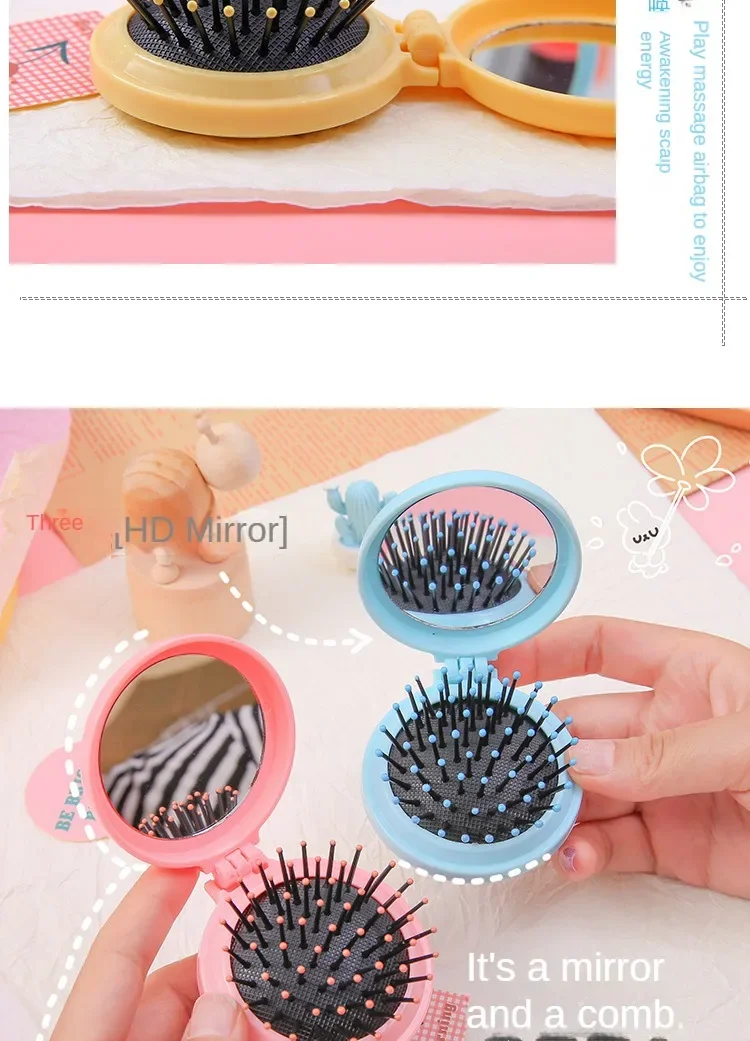 1 Pcs Small Size Hair Comb with Folding Mirror Traveling Portable Massage Folding Comb Women Girl Hair Brush Styling Tools