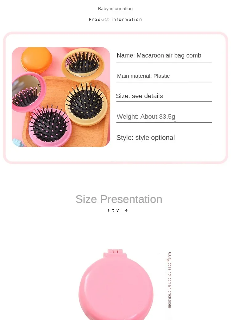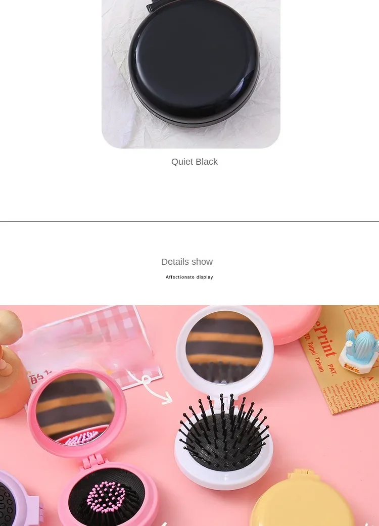 1.Our folding hair brush consists of two sides, one is a round mirror and another is hairbrush which is made of eco-friendly plastic, which is not easy to deformation and durable.