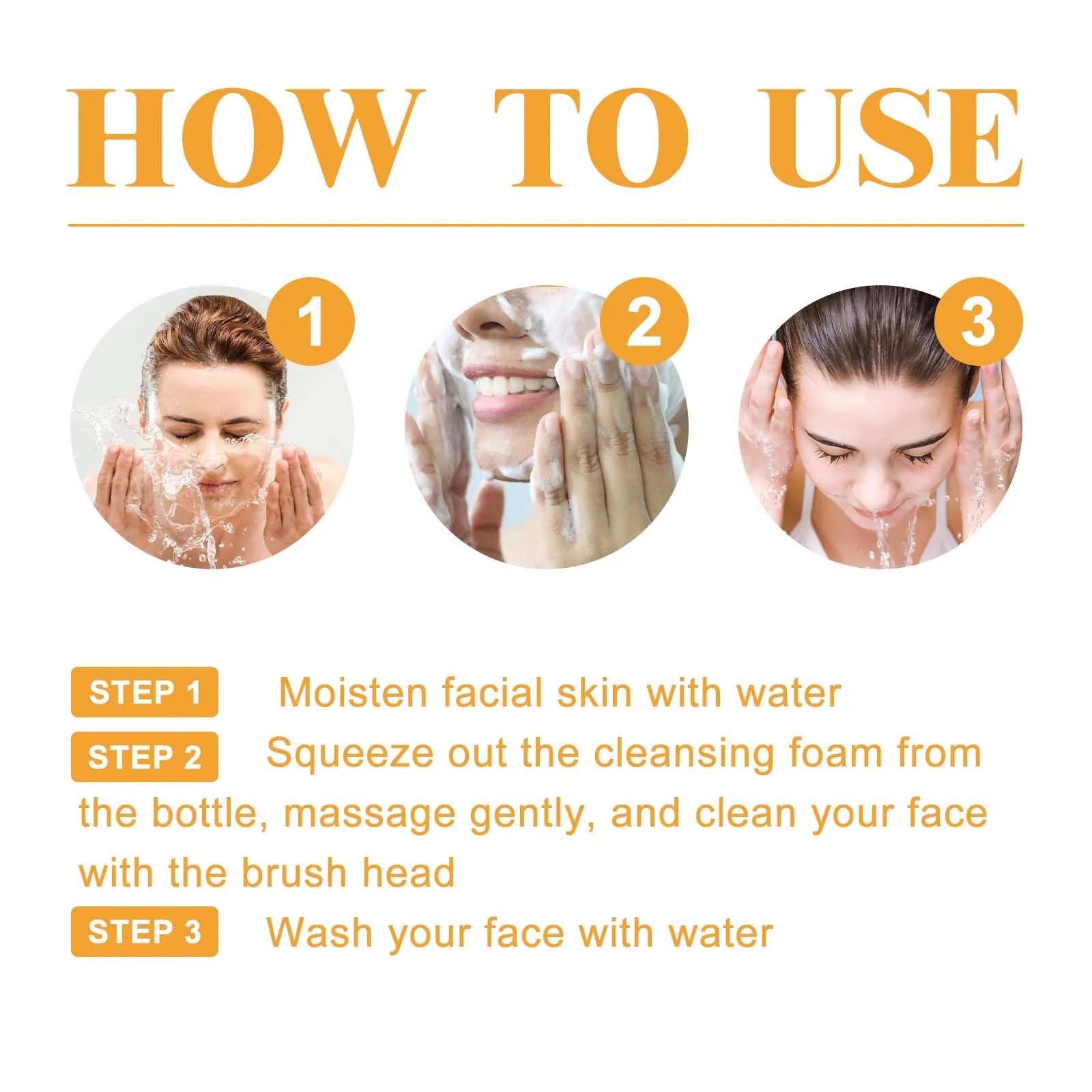 2. Squeeze out the cleansing foam from the bottle, massage gently, and clean your face with the brush head